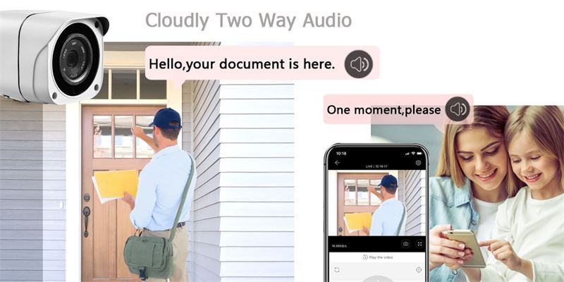 4. Καθαρίστε τον αμφίδρομο ήχο---Με ενσωματωμένο ηχείο και μικρόφωνο, σας επιτρέπουν να επικοινωνήσετε με την οικογένεια και το κατοικίδιο ζώο σας ή να δώσετε προειδοποίηση στον εισβολέα του σπιτιού σας